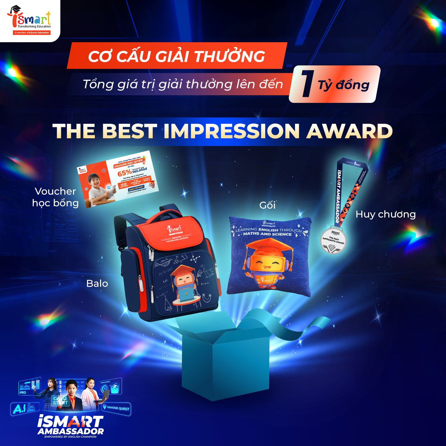 The Best Impression Award được trao cho Top 3 học sinh mỗi khối lớp có video thuyết trình ấn tượng nhất toàn quốc, do Ban Tổ chức đánh giá.