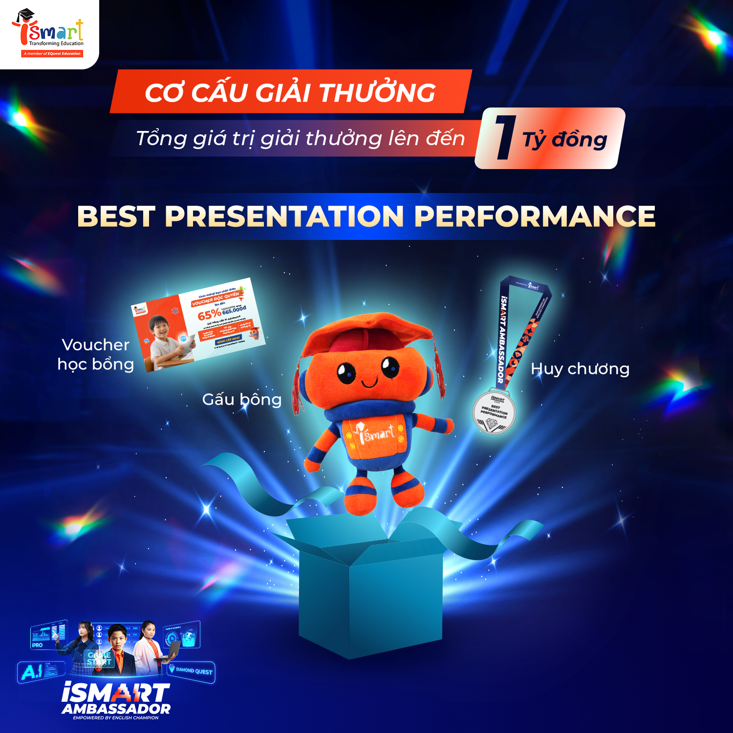 Danh hiệu Best Presentation Performance được trao cho Top 8 học sinh mỗi khối lớp có video thuyết trình xuất sắc do Ban Tổ chức chấm điểm.