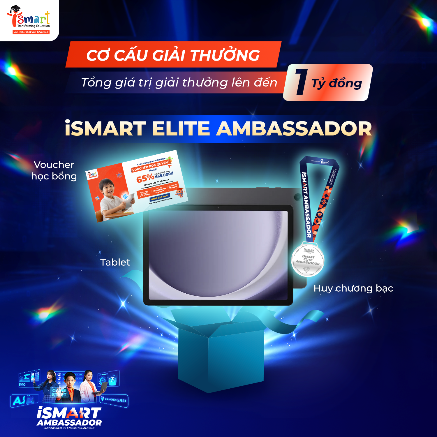 Danh hiệu iSMART Elite Ambassador được trao cho Top 3 học sinh mỗi khối lớp có tổng điểm hai thử thách đứng thứ hai toàn quốc.