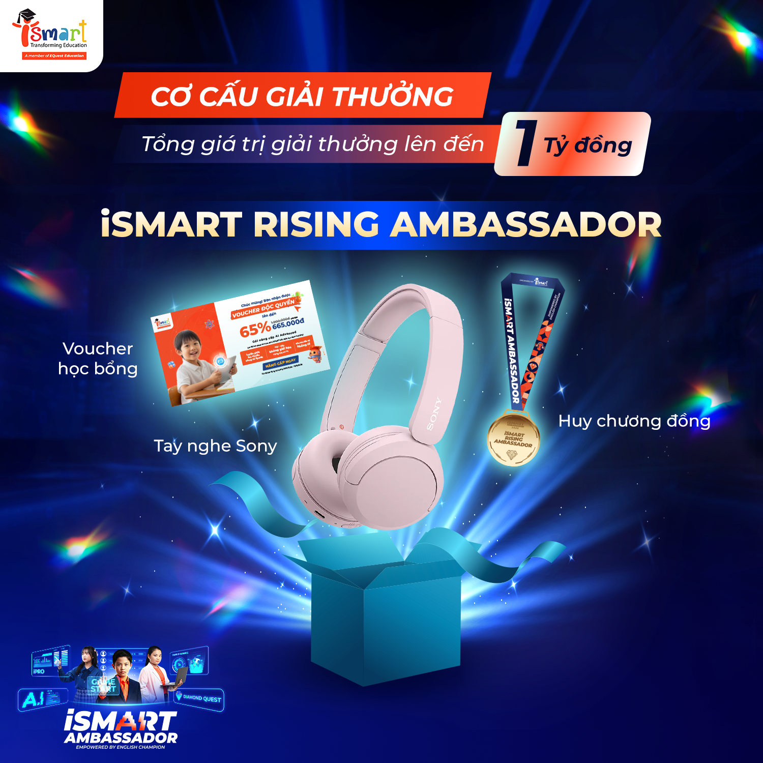 Nhằm mang đến một môi trường, sân chơi học tập tiếng Anh năng động và truyền cảm hứng cho học sinh trên toàn quốc, iSMART Ambassador 2026 chính thức công bố cơ cấu giải thưởng dành cho các thí sinh có thành tích nổi bật trong hành trình chinh phục hai thử thách của chương trình.