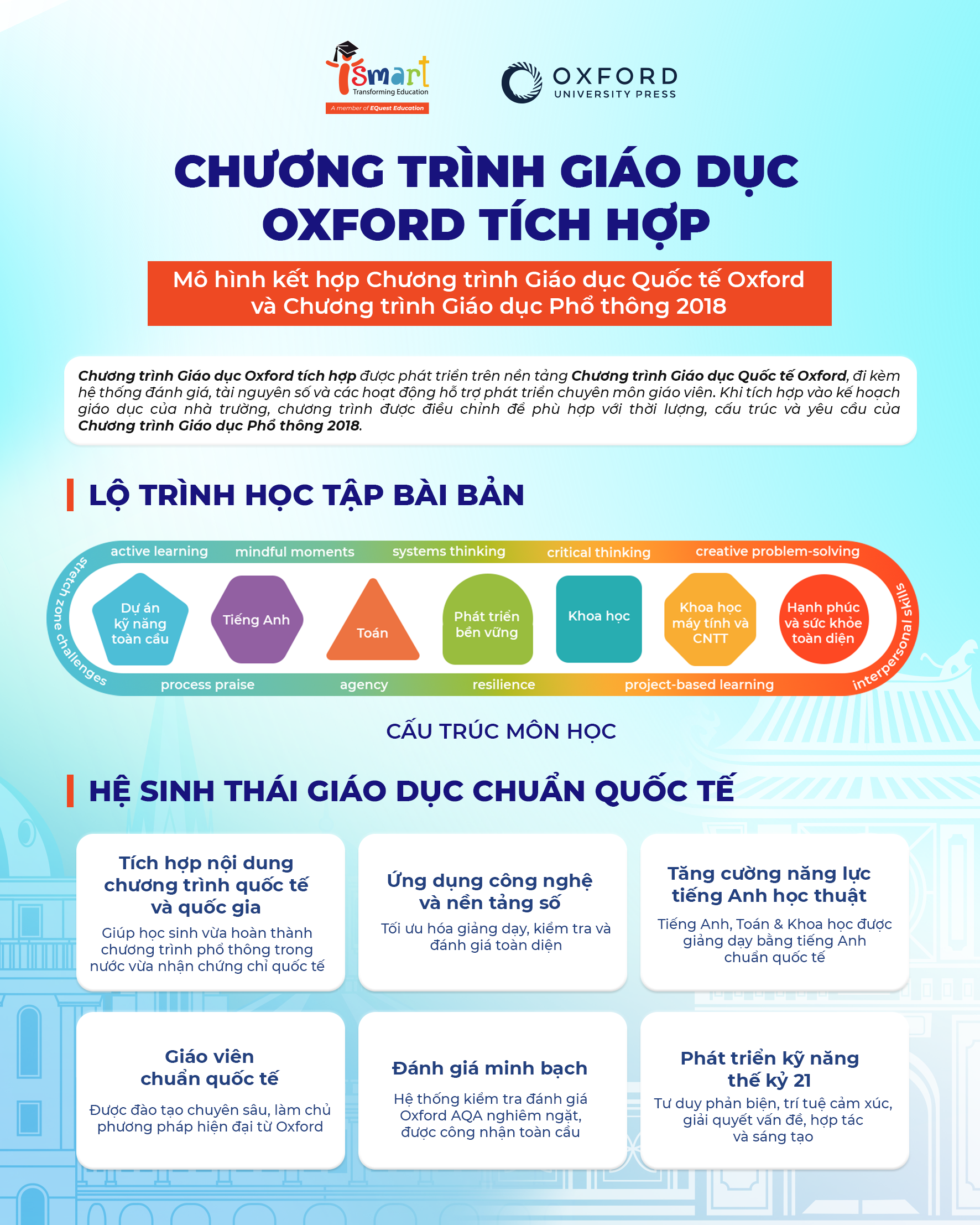 Không đơn thuần là một bộ giáo trình, Chương trình giáo dục quốc tế Oxford (OIP) là một khung giáo dục quốc tế toàn diện được thiết kế cho học sinh từ 2 đến 19 tuổi. Sức mạnh của OIP nằm ở uy tín học thuật lẫy lừng: chương trình được phát triển bởi Oxford University Press (OUP) – nhà xuất bản đại học lớn nhất thế giới và là một đơn vị trực thuộc Đại học Oxford với hơn 500 năm lịch sử.