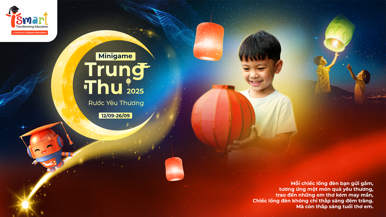 "Rước Yêu Thương" là hoạt động mừng Trung thu 2025 do iSMART Education khởi xướng và thực hiện, diễn ra từ ngày 12/09 đến 26/09/2025. Chương trình kết nối tinh thần sáng tạo STEM với lòng nhân ái, nơi mỗi chiếc lồng đèn học sinh làm ra sẽ được chuyển thành một món quà sẻ chia đến trẻ em có hoàn cảnh khó khăn trên cả nước. iSMART Education - đơn vị tiên phong ứng dụng công nghệ và trí tuệ nhân tạo (AI) trong việc dạy và học tiếng Anh, từng bước hiện thực hóa mục tiêu đưa tiếng Anh trở thành ngôn ngữ thứ hai tại Việt Nam. |