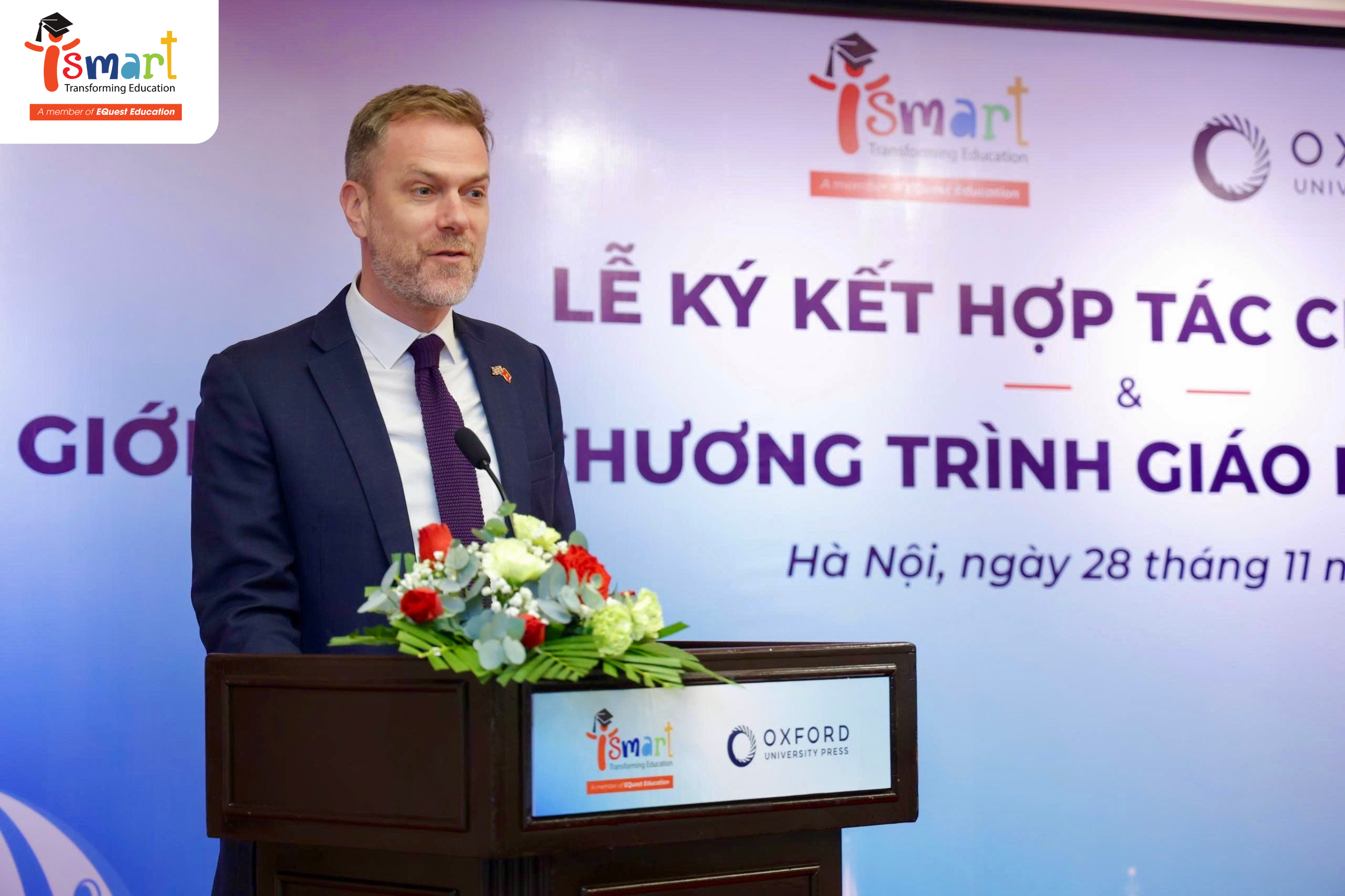 "Quan hệ hợp tác này thể hiện cam kết chung của Vương quốc Anh và Việt Nam trong việc mở rộng cơ hội tiếp cận nền giáo dục chất lượng cao, đổi mới sáng tạo và được quốc tế công nhận. Tôi mong rằng iSMART và OUP sẽ phối hợp chặt chẽ để triển khai chương trình Oxford, mang lại lợi ích thiết thực cho học sinh Việt Nam trong kỷ nguyên mới."
