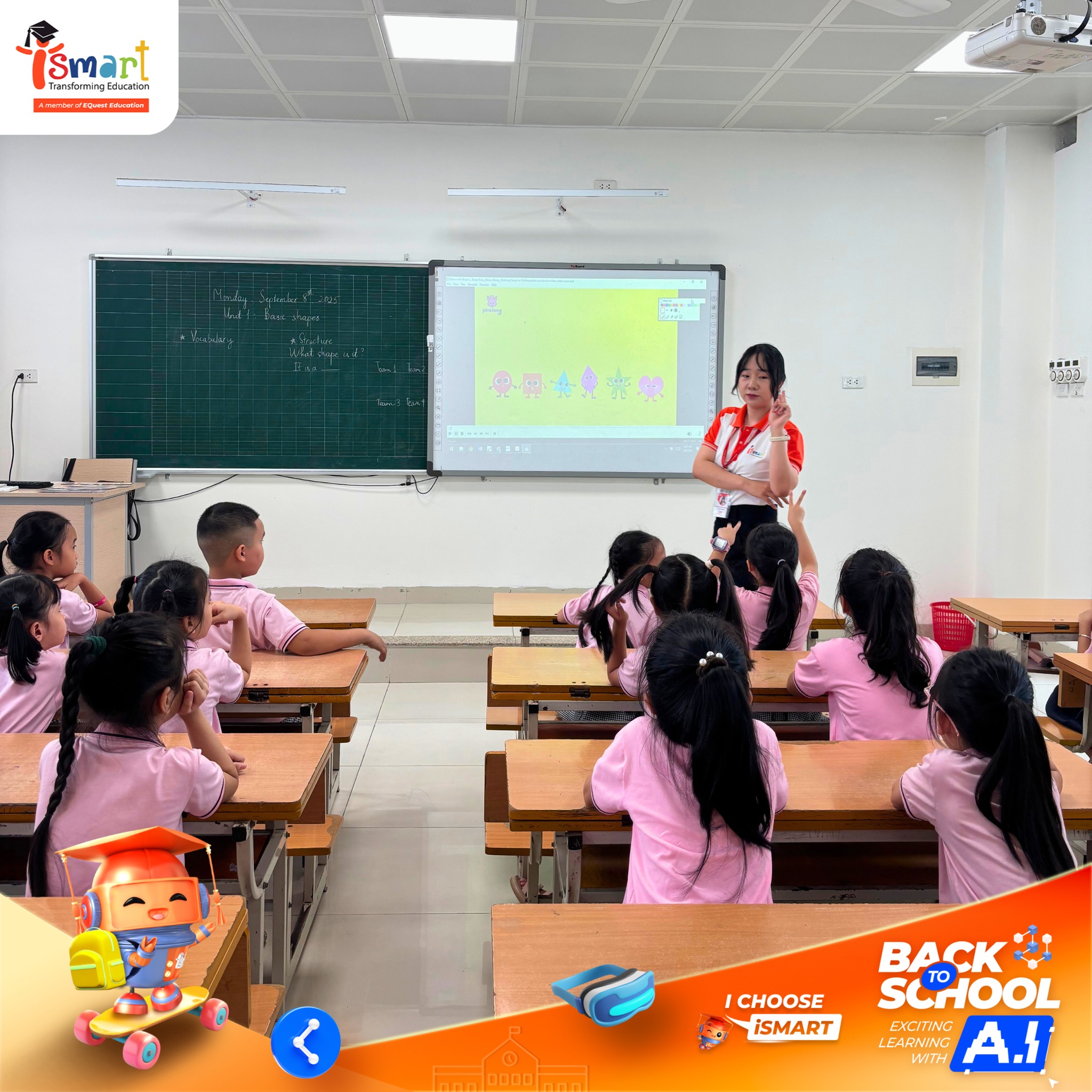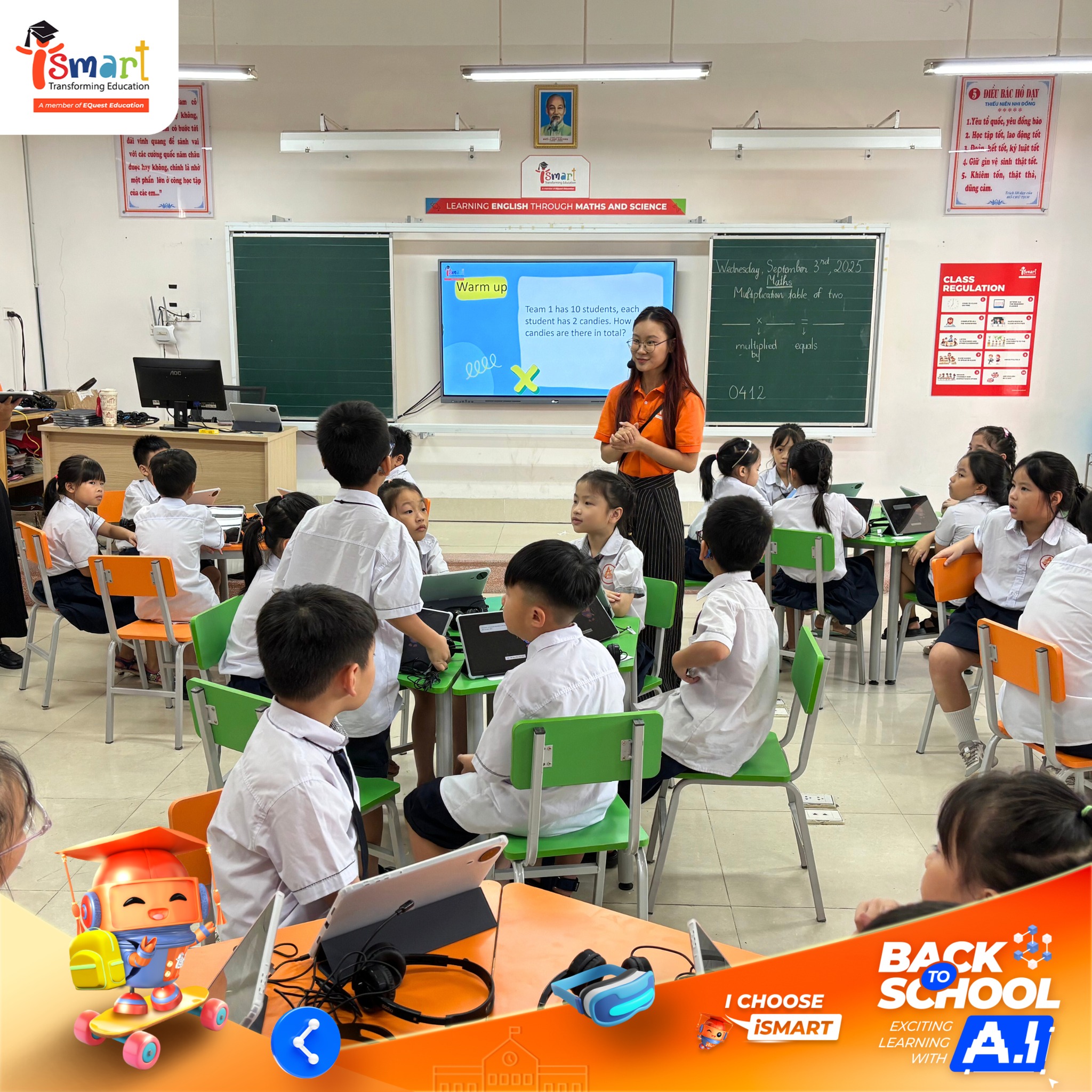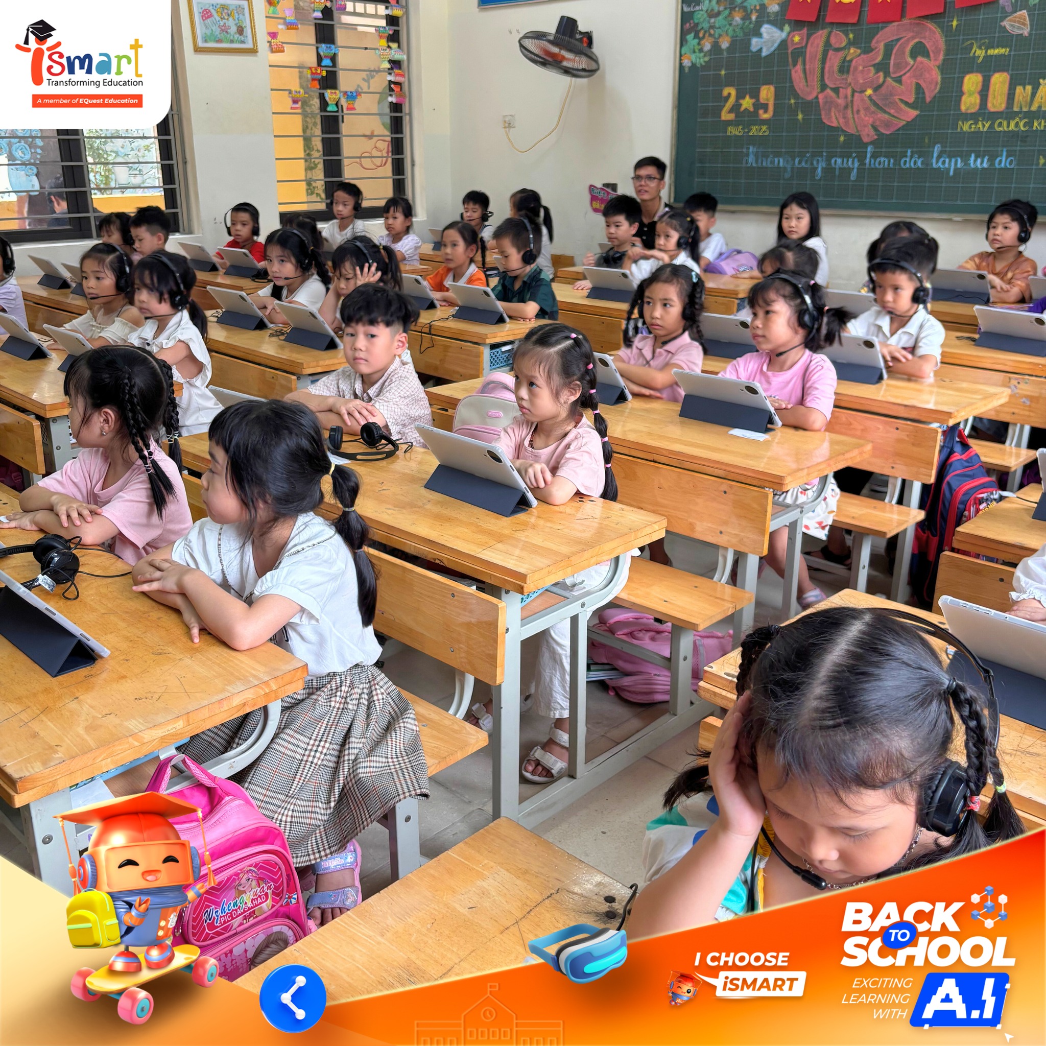 Không chỉ rộn ràng không khí ngày khai giảng, hành trình tháng 9 của iSMART còn được tô điểm bởi những trải nghiệm học tập công nghệ đầy hiện đại. Từ Hà Nội đến Đồng Tháp, các lớp học số iCLASS, iPRO và phòng chức năng tiếng Anh đã mang đến cho học sinh môi trường khám phá tri thức bằng tiếng Anh đầy mới mẻ, nơi công nghệ trở thành người bạn đồng hành nuôi dưỡng sự tự tin, sáng tạo và tư duy hội nhập.