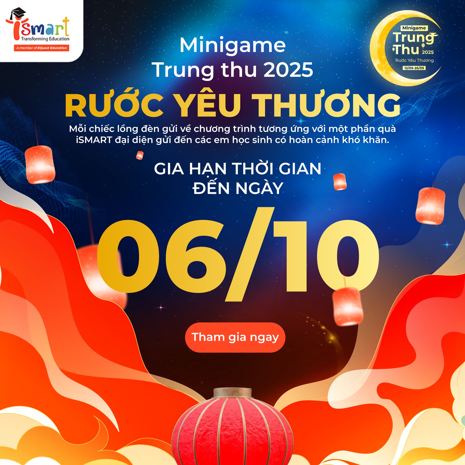 Mỗi chiếc đèn lồng không chỉ thắp sáng nên những gam màu ấm áp mùa Trung thu, mà còn chứa đựng sự sẻ chia và tinh thần gắn kết cộng đồng. iSMART sẽ thay mặt các bạn học sinh để trao tặng những món quà ý nghĩa tới với các bạn nhỏ có hoàn cảnh khó khăn, để các em cũng có thể đón một mùa trăng trọn vẹn.