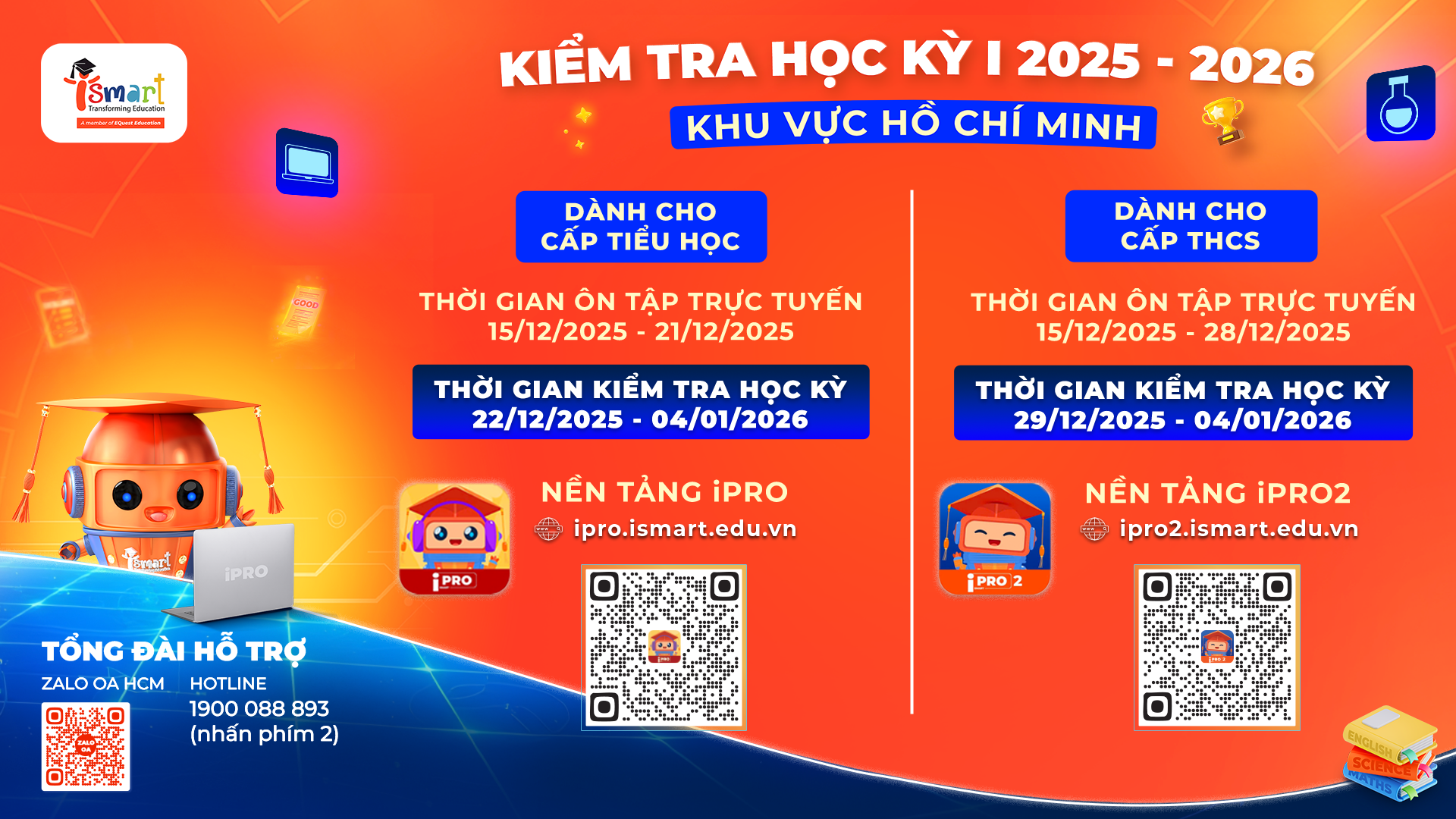 Tháng 12/2025 khép lại với kỳ kiểm tra chất lượng học kỳ 1 cùng nhiều hoạt động hấp dẫn do iSMART Hồ Chí Minh mang đến cho các em học sinh thân yêu.